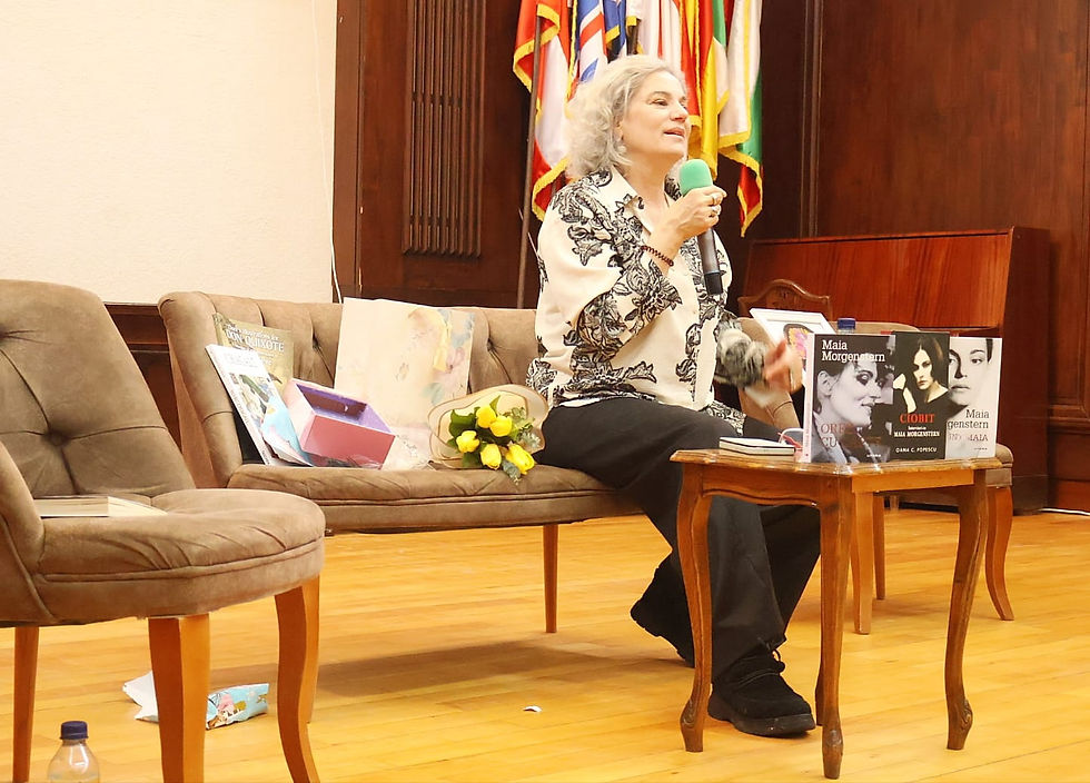 Întâlnirea cu Maia Morgenstern a fost un eveniment extraordinar la care am avut ocazia deosebită de a o vedea pe ea, nu pe o scenă, ci chiar în fața noastră, în rolul propriei persoane. Prin prezența sa luminoasă și felul copilăresc de a fi, ne-a arătat că sinceritatea este „un exercițiu care trebuie să ne urmeze toată viața”. În scrierile ei, ne arată că această sinceritate nu este mereu una comodă sau decorativă, ci una tăioasă, asemenea ciobului de oglindă despre care artista scrie cu atâta grijă. Într-o lume care se grăbește să catalogheze și să simplifice, Maia propune o oprire în loc, o privire atentă peste umăr, acolo unde istoria personală se împletește cu istoria mare, cea plină de povești înlănțuite care îi plac atât de mult pentru că îi oferă context și rădăcini.