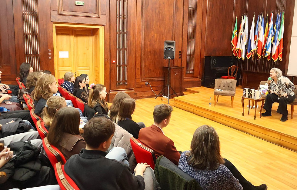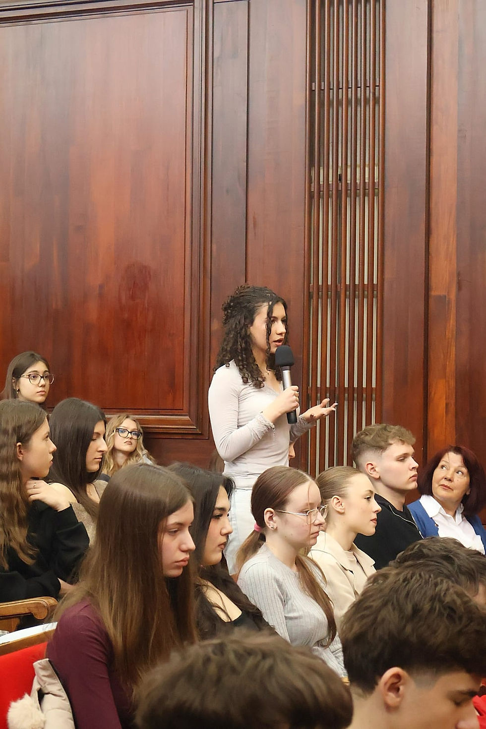 Sala de festivități a liceului nostru a devenit, preț de câteva ore, spațiul unei întâlniri pe care mulți dintre noi nu o vom uita curând. Prezența doamnei Maia Morgenstern a adus cu sine o atmosferă surprinzător de caldă, transformând ceea ce ar fi putut fi un eveniment formal într-un dialog sincer și plin de vitalitate.